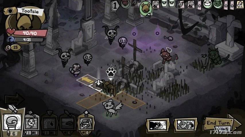 每次冒险最多带四只猫,给它们戴上不同职业项圈就能获得对应的技能池,战斗后随机一只猫会升级并学习新技能,搭配上千种技能和近千种道具,每局都能组合出意想不到的套路。