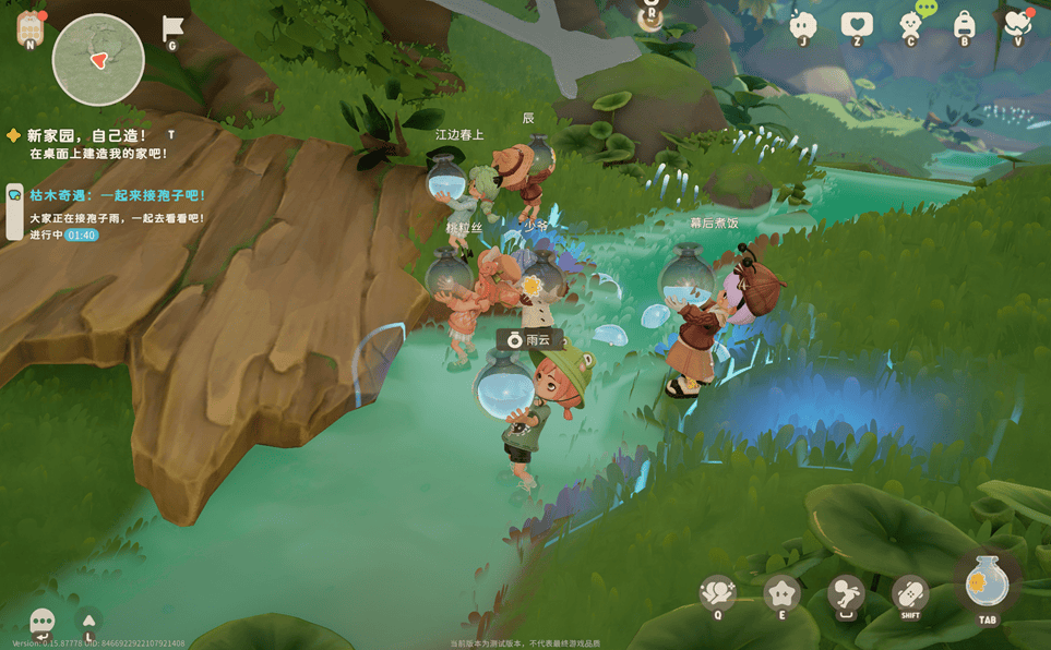 我本人并非典型的“社交型玩家”,但在一次探索中却被意外打动,远远看见一群小人举着瓶子围在一起,动作整齐划一,仿佛某种神秘仪式。走近才发现,原来大家都在收集露珠。没有任务指引,也没有奖励提示,但那份共处的氛围让人忍不住加入其中。