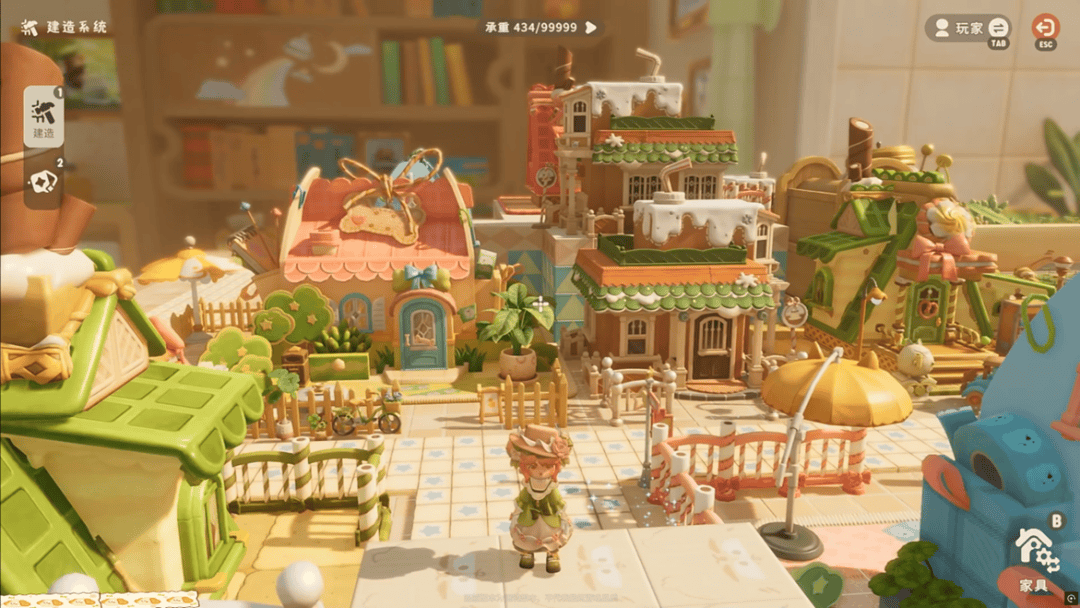 开测后,玩家们随之展现出惊人的创造力,法式复古风、野营户外风、童话娃娃屋、森系小院……网上有大量玩家分享他们的方案,用饼干铺设地板、巧克力棒做栏杆,还原出《格林童话》中的“糖果屋”;或者把大大小小的蘑菇都往院里搬,打造一个宛如绘本插画般的奇幻森林小屋。风格各异的家园层出不穷,每一份布置都像是在讲述一个关于“理想生活”的故事。