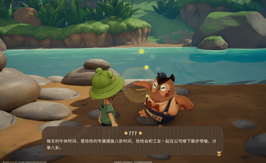还有一个细节是角色的语音。粒粒们说话用的是一套自创的语言,听起来呜哩哇啦的,但你仔细听,又能从中捕捉到几个中文音节,比如“找我什么事”、“你好呀”、“明天见”这些关键词。配合上语气、语调和肢体动作,玩家也能准确捕捉到TA们的情绪。