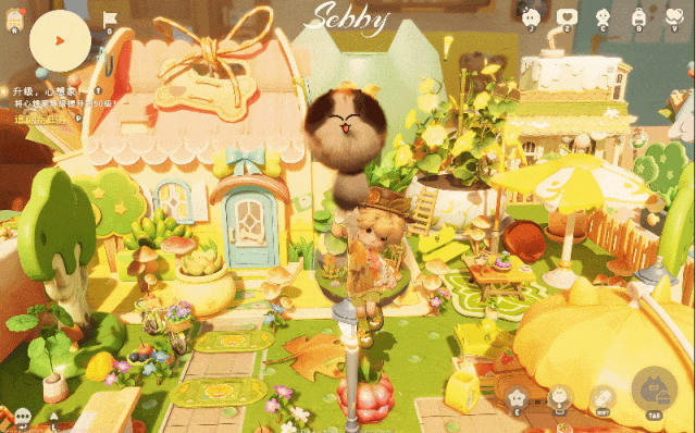 在资源采集机制上,《粒粒的小人国》跳脱了传统生活模拟游戏中“固定技能+重复点击”的模式。虽然延续了“不同工具对应不同用途”的设计理念,但在表现形式上更具想象力与辨识度,滑翔伞是一只名叫“乌帕”的浮空猫咪,疾跑时脚下自动浮现滑板,而战斗所用的“武器”则变成了棒棒糖。