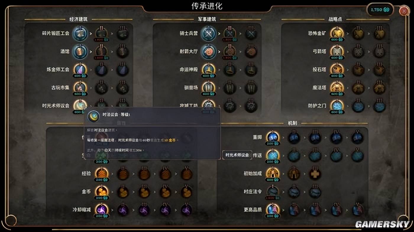 它的逻辑有些类似于魔兽、星际这种经典RTS游戏:野外的金矿是你主要的收入来源;经济建筑负责生产额外金币、奖励与士兵,是你支撑战局的经济命脉;而军事建筑则直接生产从步兵、法师到投石车的各类士兵,它们会沿着兵线自动向BOSS处推进,配合上地图上额外的增益建筑,你甚至可以实现仅靠小兵打死BOSS的成就。