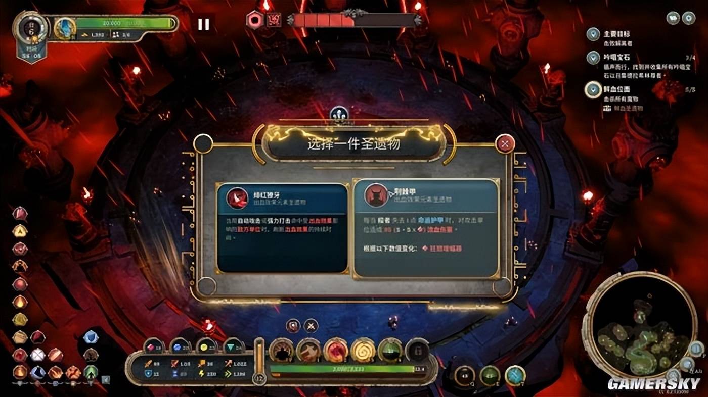 而在对局中,你所获得的奖励都是随机多选一,地图上的资源、副本怪物也都是随机的。你永远不知道下一个营地里藏着什么惊喜。如果你愿意深入副本,那么你还能获得额外的部队以及带有元素效果的遗物等奖励,进一步加深构筑的强度。