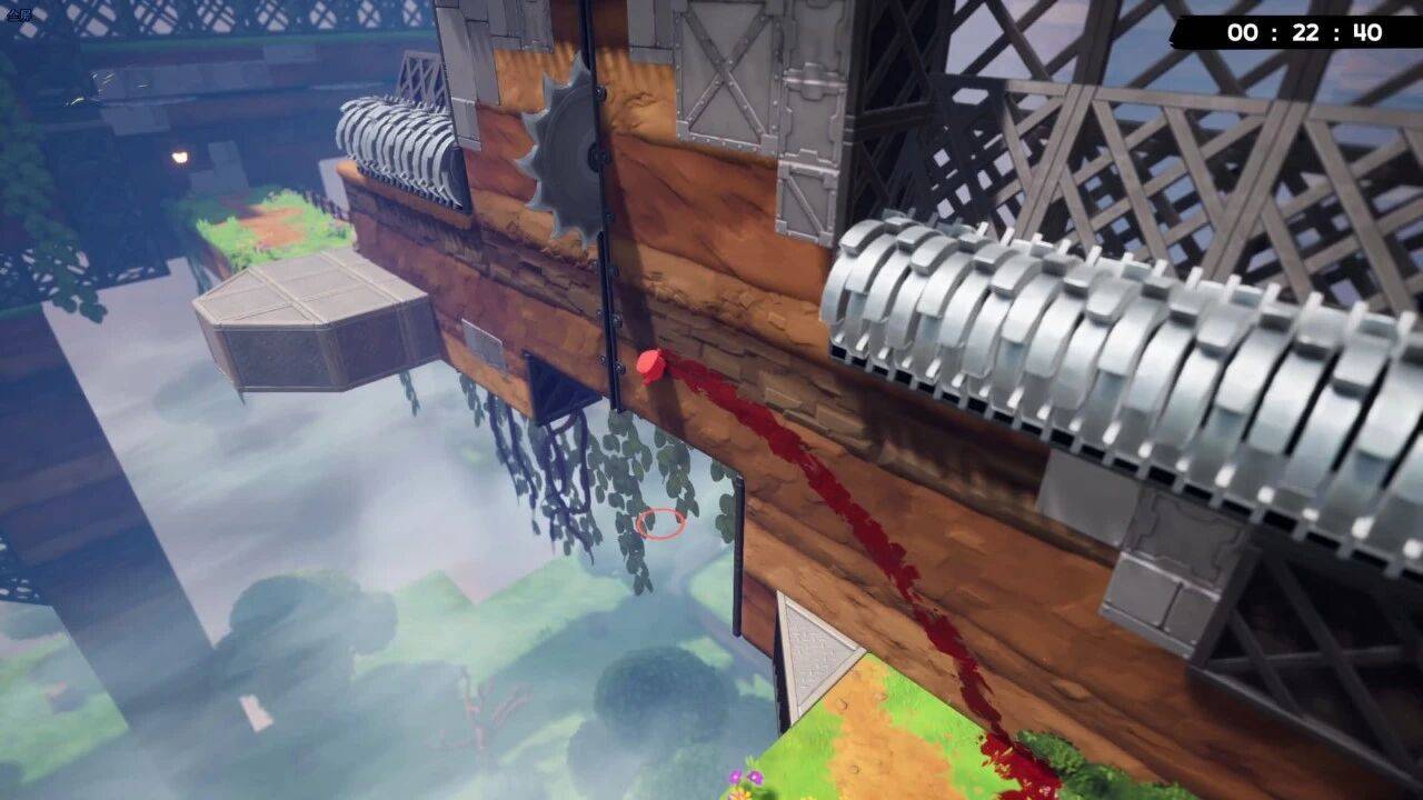 加入 Z 轴的立体空间,对前后左右落点判定也很严苛。从第二大关开始就会有不少平台在斜前方,或者需要往斜下方滑墙的操作。于是角度不对、擦边滑出去、跳过掉出平台......种种这些常让人嘴里嘟囔着“哎!就差一点!”,然后气鼓鼓重开。