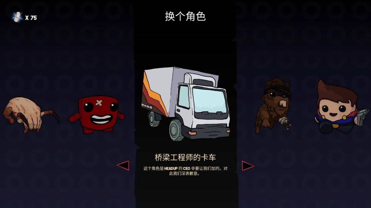 另外,还有《本与艾德》中的僵尸“艾德”也被拉来客串,这位更是重量级,跳起来按冲制,可以冲的巨巨巨远,手感尤为特殊,某种程度上用好了也能让很多关卡变简单。更绝的是,我们还能换《桥梁构造者》中的卡车上阵,虽说看着卡车扒墙跳跃实在让人嘀笑皆非,但人家毕竟有四个轮子,冲刺速度属实很有劲了。