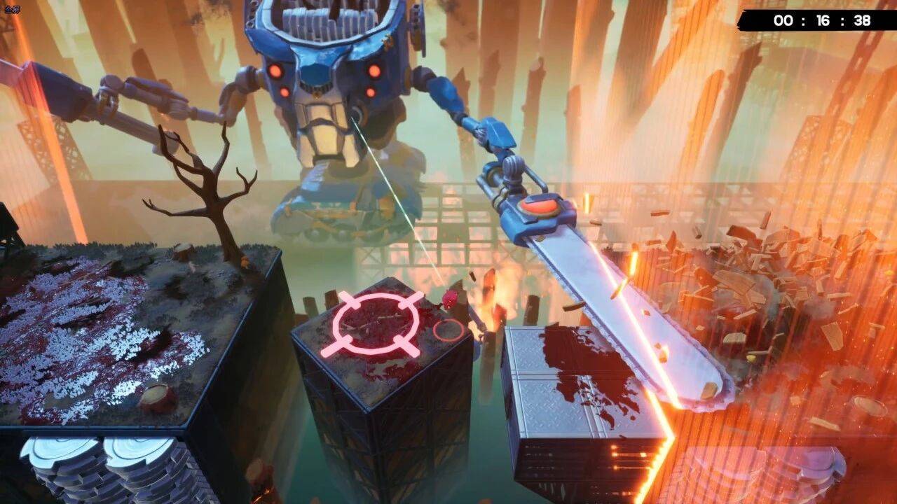 《超级肉肉男孩 3D》除了小关卡纵横跳跃外,BOSS 战也是极具诚意。我试玩的几个 BOSS 就拥有完全不同的结构,其中追逐战、撑时间生存战,以及利用机关打伤害的机制战一应俱全。这几类东西听上去不算新鲜,但由于没有“打”这个动作,思考路线和玩法的乐趣反而更加贯穿始终。