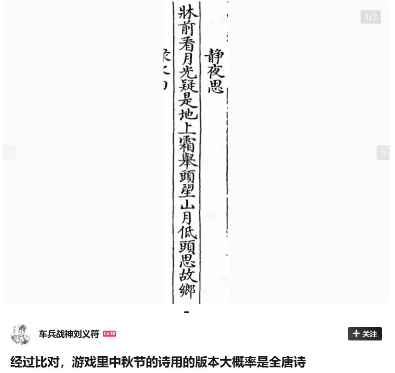 游戏对细节的考究也值得一提,比如剧情中的《静夜思》采用 “床前看月光”, 就是取自版本更古老的《全唐诗》,而非大家更熟悉的明代通行版,更加符合游戏唐末宋初的背景设定。