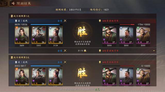 此外玩家每一次发布占领指令前,可以进行战事预测,系统会根据敌我双方强敌模拟三次对战,给出战斗结果和伤亡预测,让玩家知道自己强度上限,避免不必要的翻车出现。