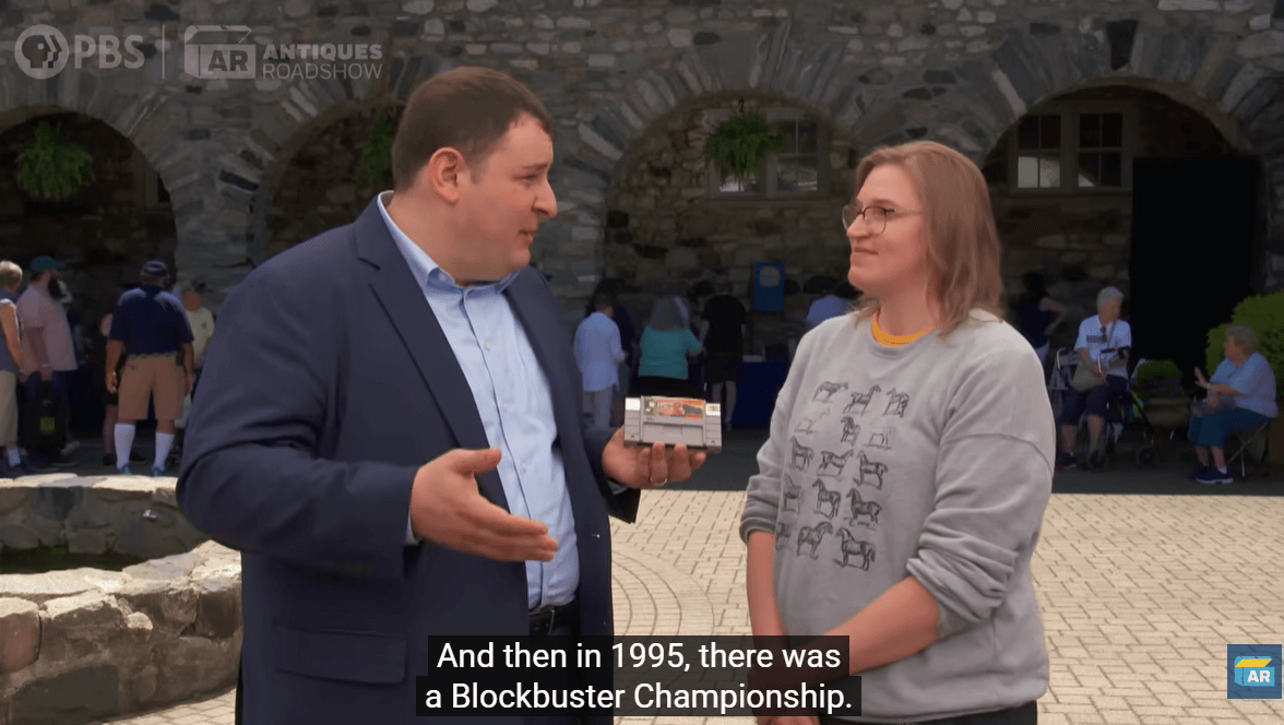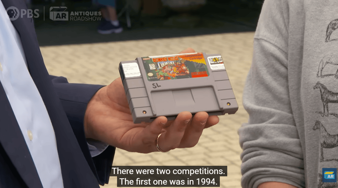 3月30日,国外鉴宝真人秀节目《鉴宝路演》迎来第30季的首播集,本场有一位女士带来一个特殊的宝贝:超任(SNES)版的《超级大金刚》(美版名“大金刚国度”)卡带,上面贴有一张印有“Hollywood Video”(好莱坞录像带)的贴纸。