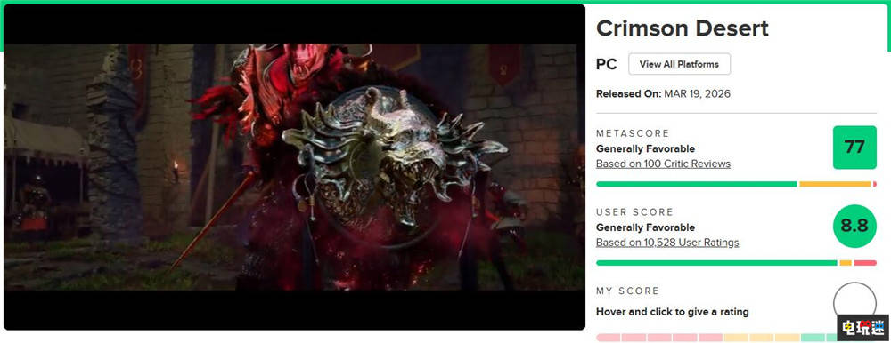 《红色沙漠》如今已经更新到1.01.03版本,官方已经对游戏进行了大量优化,包括储物箱到更多的召唤坐骑等等。官方的不断修补也挽回了玩家口碑,目前《红色沙漠》Steam版的全球评价已经回升到“特别好评”。Steam玩家在线峰值也从首发的23万提升到27万。所以在Matecritic上《红色沙漠》的玩家评分也达到8.8分,超越《宝可梦Pokopia》的8.5分,仅次于今年另一款大作《生化危机:安魂曲》(9.4分)。