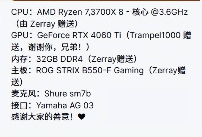 所幸,除了家人的支持,4年雷打不动地开发直播,也为Cakez77积累了一批核心粉丝。除了陪伴与建议外,他们在现实层面也给Cakez77带来了很多帮助,当Cakez77电脑损坏无法继续开发时,是那一份份来自五湖四海的爱,为他拼起了再远行的船。