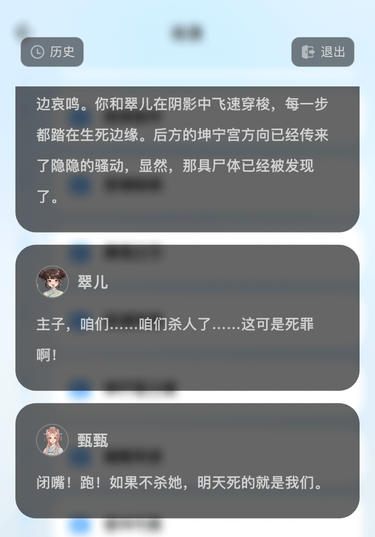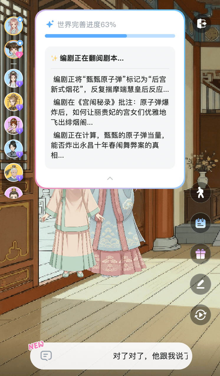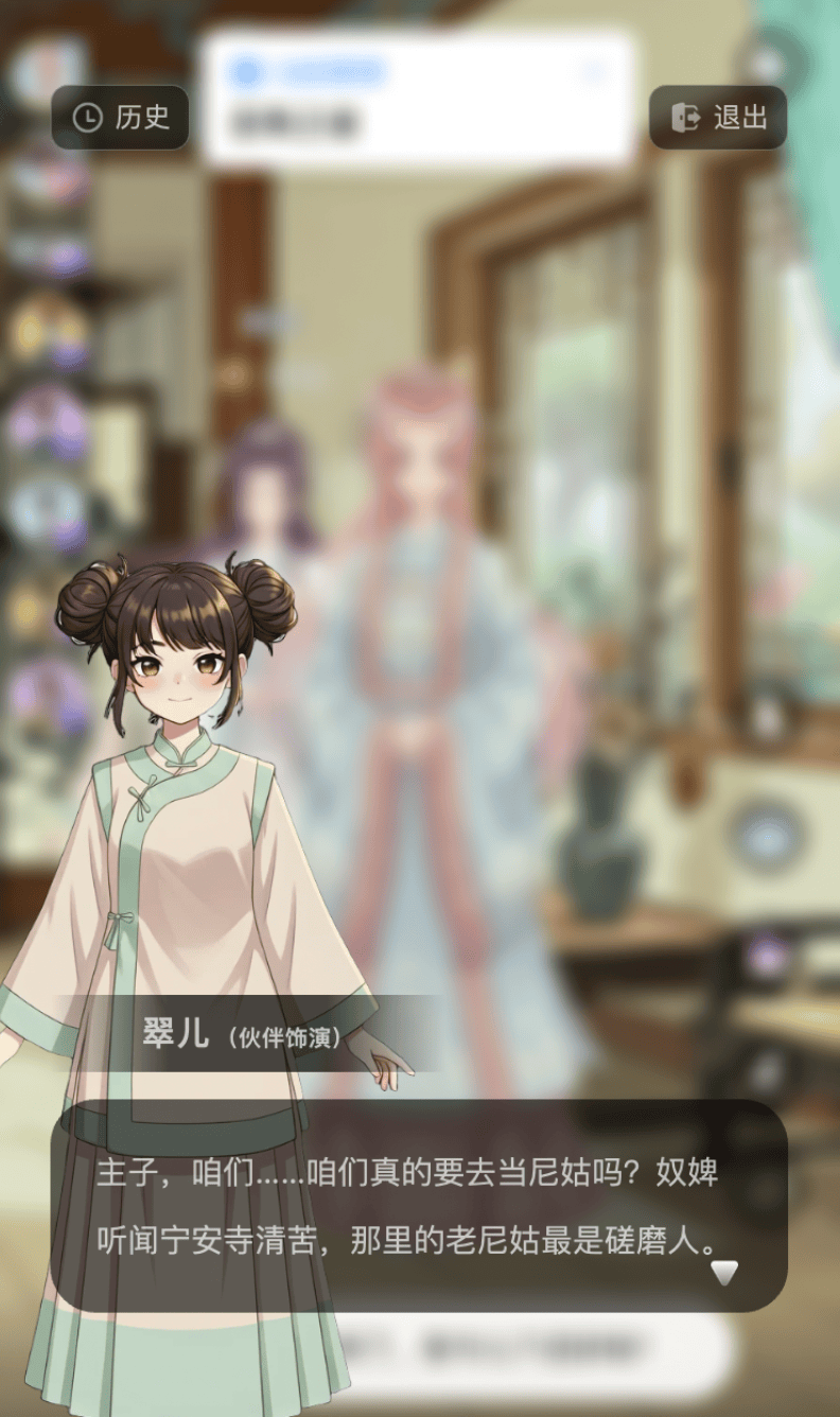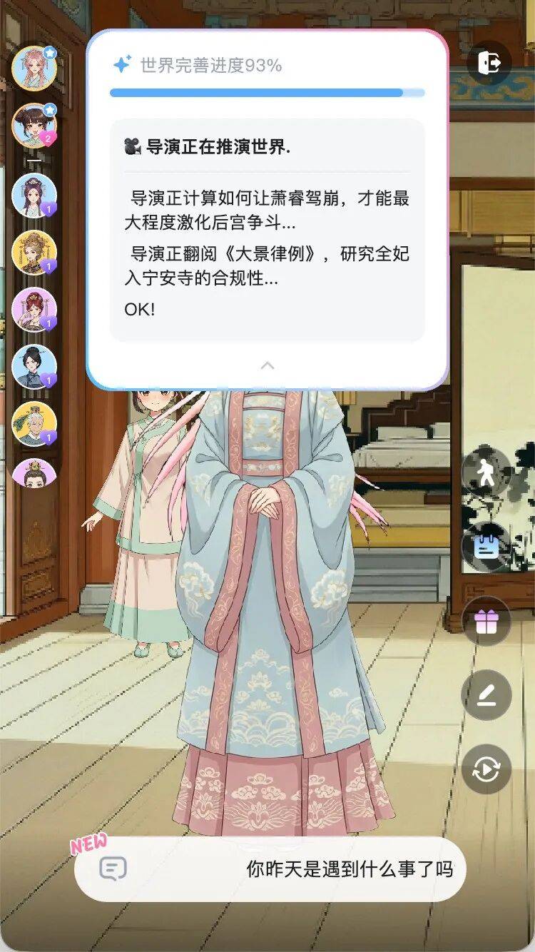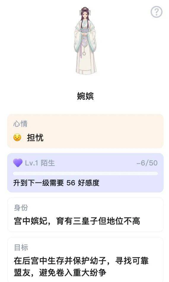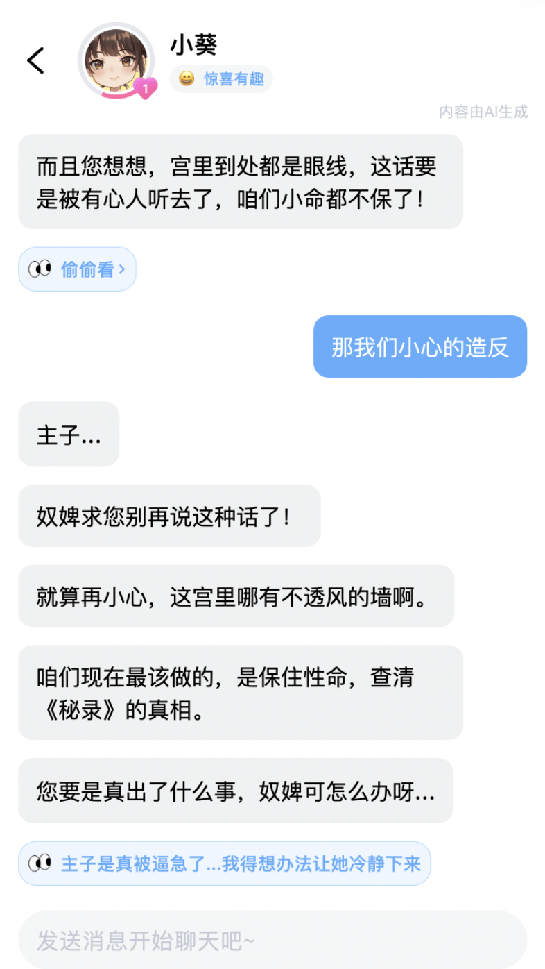 在体验中,我能明显感受到这套系统在起作用。比如我在宫斗中做了危险操作,NPC会切成愤怒表情,AI伙伴则忧心忡忡——情境记忆给了用户额外的信息量和沉浸感。