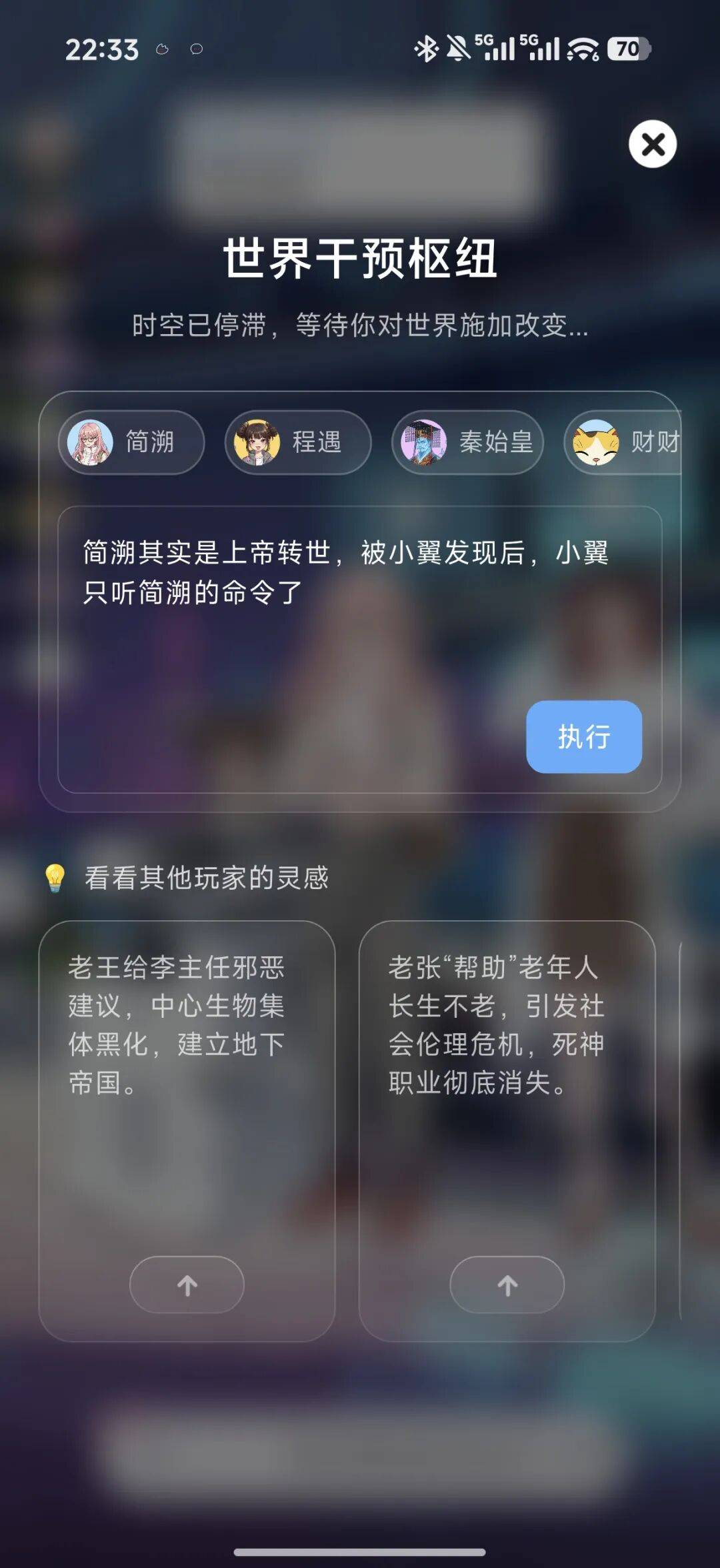 到这儿,你或许以为叽伴只是一款还行的文字RPG。但其实产品真正的亮点在于「许愿」功能——你可以往世界里写入任何事件,AI会接住你的脑洞,推演世界进程。