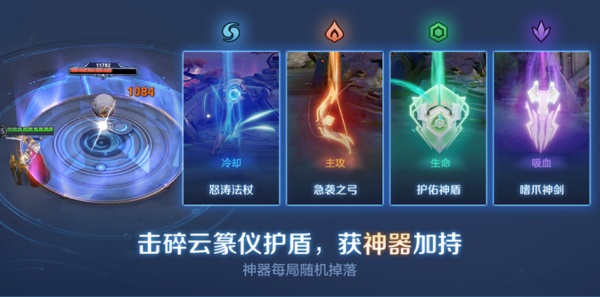 4、月之回廊中心设立一处【云篆仪法台】,法台周围被护盾保护,击碎护盾的玩家将会夺取云篆仪,获得随机神器奖励,同时该阵营玩家获得金币奖励。之后月之回廊将会关闭,所有玩家将被传送回王者峡谷。