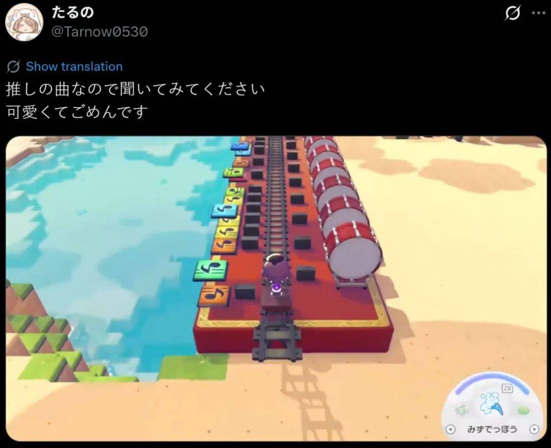 随着玩家们对玩法的开发,各种道具的功能上限被慢慢摸索了出来。音乐板加矿车,就成了一个演奏米津玄师新歌的音乐盒;在果树间装上阀门可控的水槽,立马解决了宝可梦果农的摘果子难题。