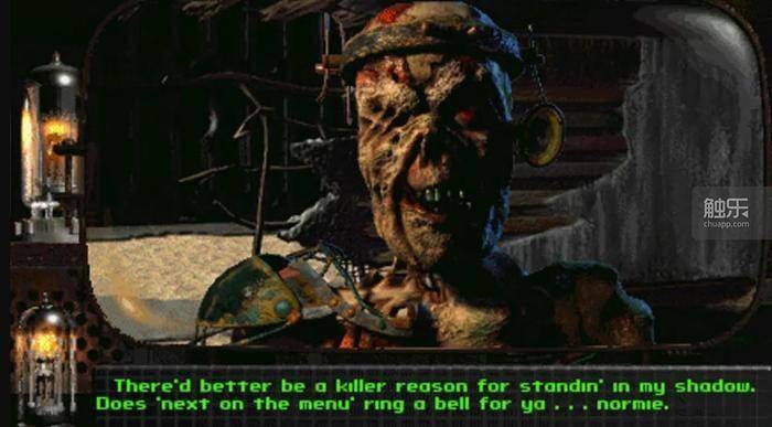 从某种意义上讲,这种拼凑式的开发方式,导致《辐射2》的基调缺乏一致性。与整体氛围阴暗的前作不同,《辐射2》充斥着对巨蟒组(英国的6人喜剧组合——译注)、《银河系漫游指南》、“哥斯拉”等流行文化元素的古怪致敬。在《辐射2》中,某些梗确实搞笑,但大部分梗都偏离了游戏主题。“我认为,伦纳德和杰森的离开导致游戏失去了原有的黑暗基调。”凯恩解释,“我个人坚持这样一项原则:‘不随意添加玩家无法理解的任何笑话或文化梗’,但当我离开黑岛后,这项原则也被团队抛诸脑后了。”