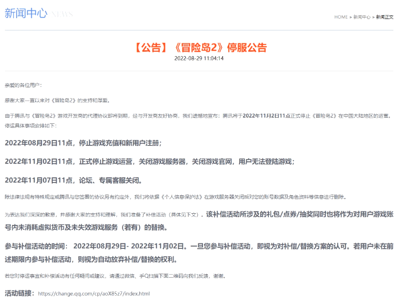 2022年11月,国服正式停止运营。