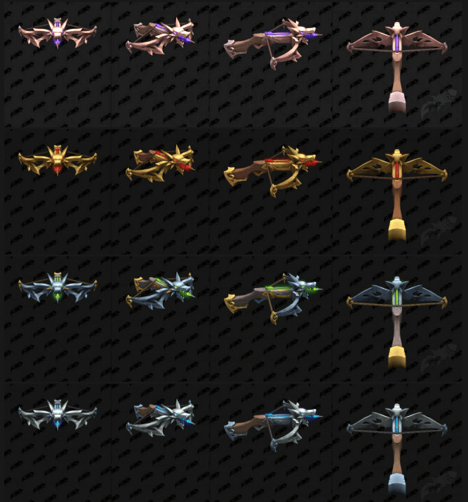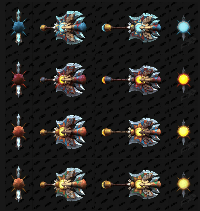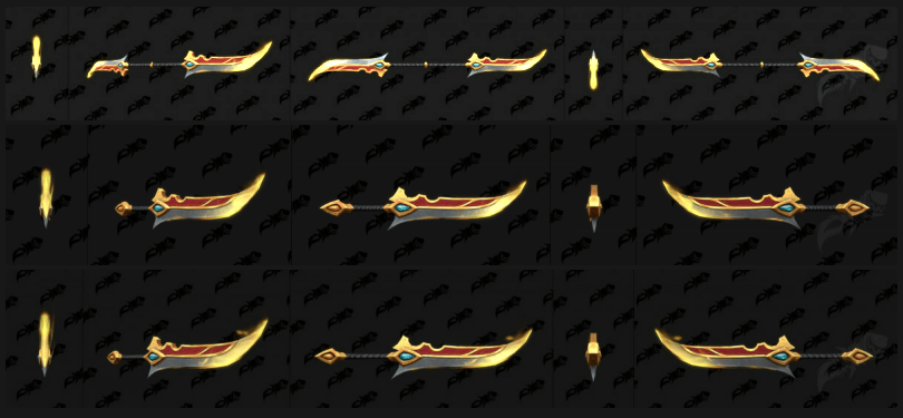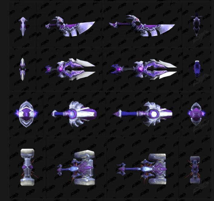 这里面,一些武器已知晓来源,如烈日行者(Sunwalkers)和吉尔尼斯忠诚者(Gilneas Loyalist)系列,但仍有一些武器尚未确定获取方法,随着12.0.5的临近,有望获得更多信息。