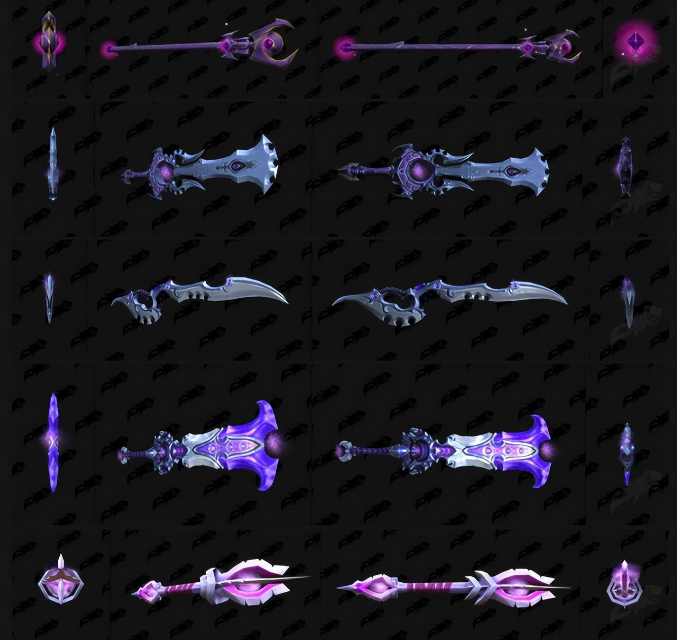 《魔兽世界》12.0.5补丁的PTR(公共测试服)上,数据挖掘到一批新的武器模型,包括受黑暗之井和虚空启发的特别设计,外观跟TBC时代“太阳之井高地”掉落的武器有诸多相似之处,来看一下。