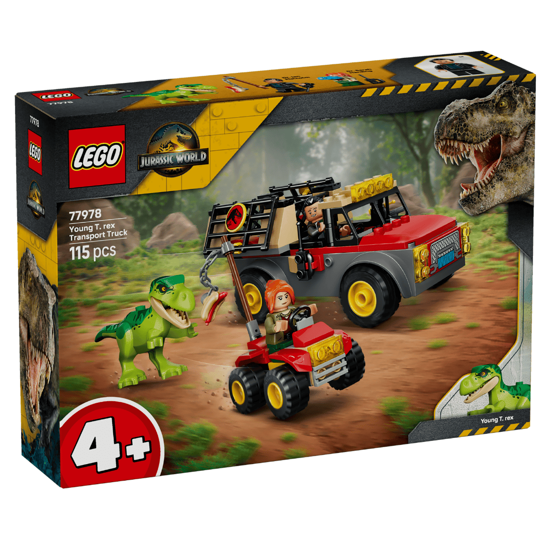 4+ 低龄友好套装,虽然零件少但包含一只幼年霸王龙模具和 2 个人仔,还有两辆可拼搭的车辆。非常适合作为孩子入门侏罗纪世界的“第一套乐高”。