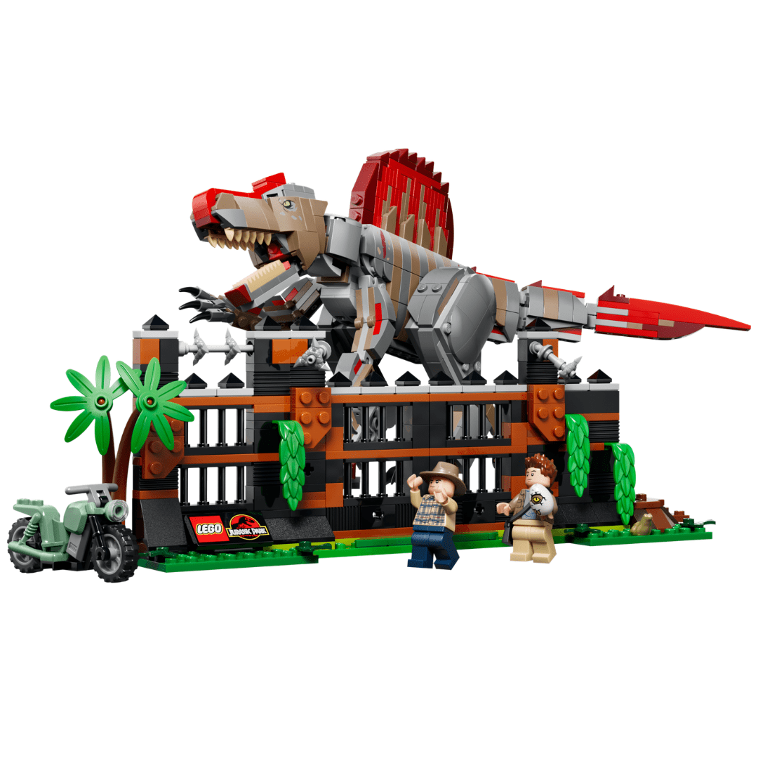 还原了《侏罗纪公园 3》里的经典反派——棘龙。模型尺寸可观,关节可动,搭配可破坏围栏、摩托车和 2 个人仔。喜欢电影名场面的玩家不要错过。