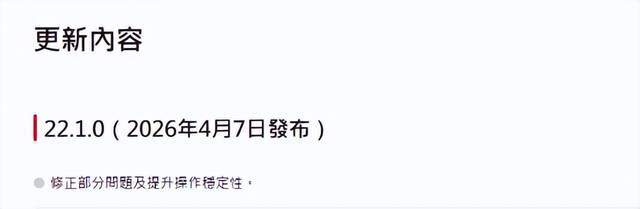 相比上次的“史诗级更新”,这次更新说明十分简短,仅显示修正部分问题和提升操作稳定性。