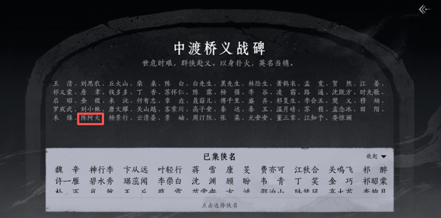 不同于市面上的其他开放世界游戏的故事,一个地区一段故事旅程结束之后就真的结束了,燕云总会在你猝不及防的时候“给你一刀”。当你好不容易从龟奶奶的故事中走出来后,在中渡桥义战碑中赫然能看到龟奶奶儿子陈阿大的名字。当你站在故事的开头,望向他们必死的结局时,这种知果寻因的震撼又何尝不是燕云的魅力所在呢?