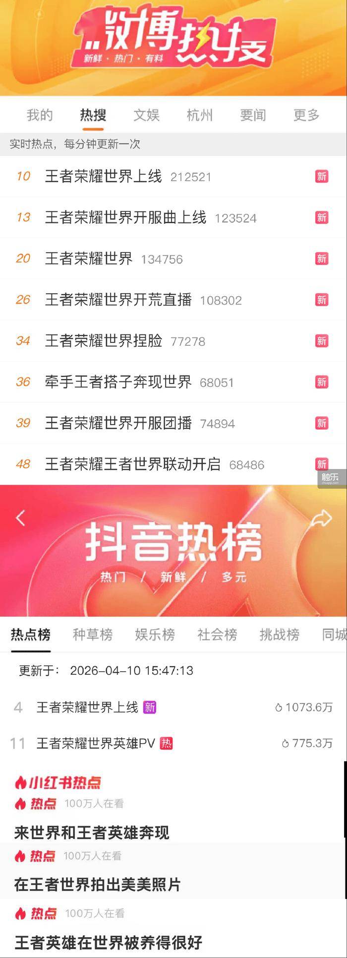公测首日,与《王者荣耀世界》相关的话题登上了多个热搜榜单