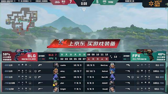 2026 VCT CN第一赛段常规赛,BLG 2-1战胜FPX。