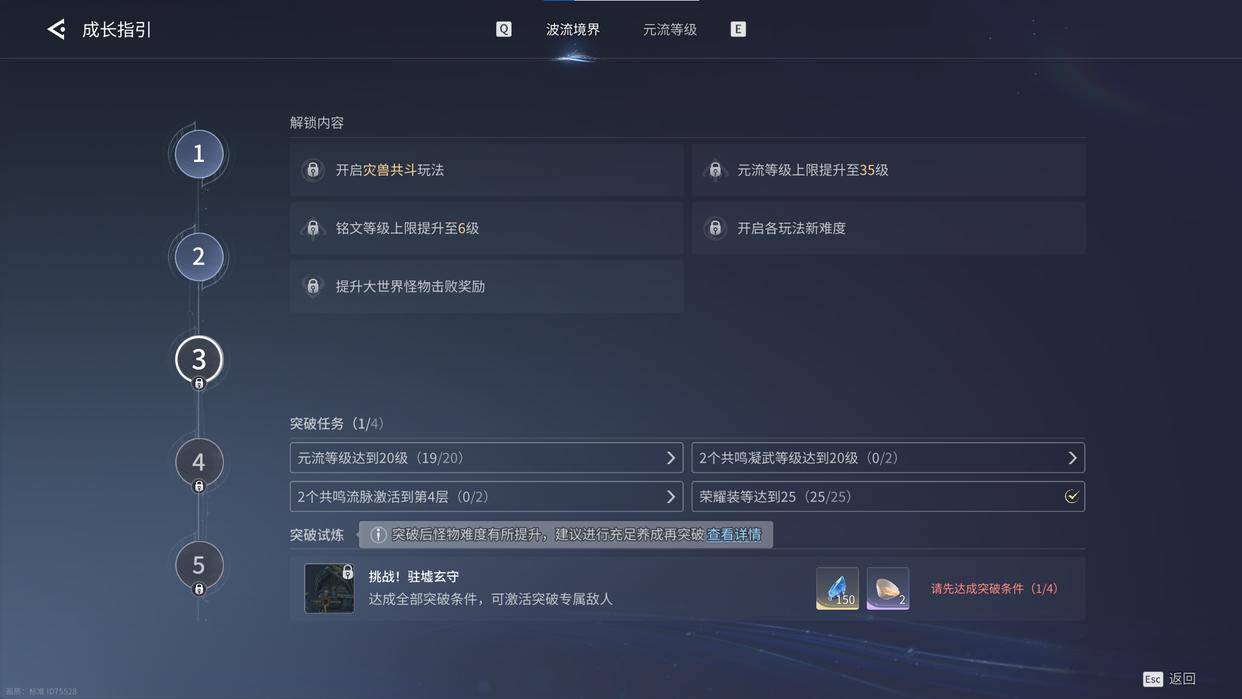 最后是最重要的元流等级和波流等级,波流等级相当于世界等级,元流等级受世界等级影响,在开荒阶段,我们要做的是用最短的时间提升元流等级,元流等级即将达到上限时,立即为波流等级升级做准备。