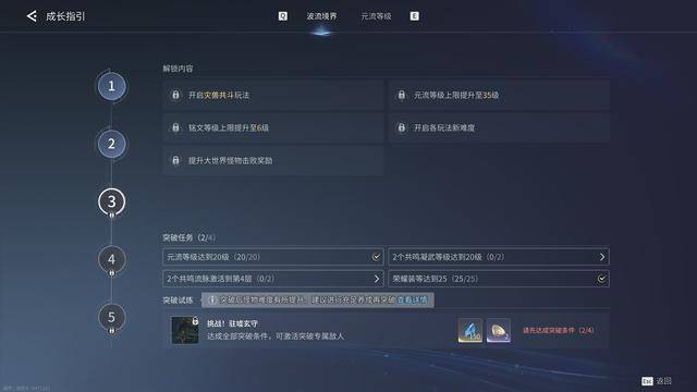 其次,还可以通过支线任务、刷副本(流光试炼)、世界探索等来获取经验,当主线任务卡级的时候(即需要更高等级才能去做下一个主线任务),就可以通过这些途径来提升等级,顺带还可以刷一些材料来提升自身战力,打任务boss也会更加简单。不过,这个游戏存在一个等级上限(波流等级),一旦满足条件,优先去突破上限,不然等级会卡在那里。