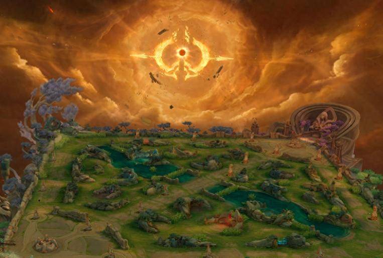 看到王者峡谷头顶的巨大画幕没,这张图真的是把王者峡谷和王者世界完美融合了,玩家们一开始还以为王者峡谷要迎来一场火雨了,就像峡谷都被燃烧了一样,很震撼。