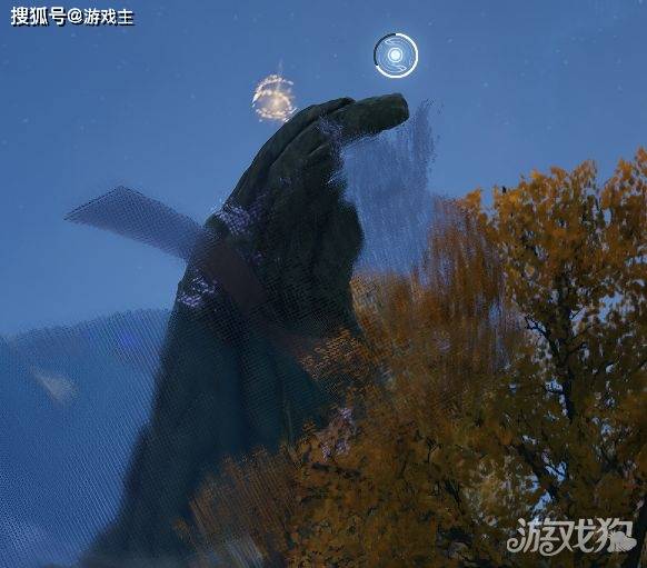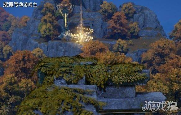 传送到地图上霞光小径渡石,随后来到地图上标注位置,发现发现残破建筑,随即向上看发现顶部的闪光,攀爬上去后获得第三个赋神令。