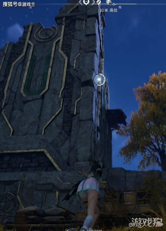 传送到地图上淡烟林渡石,随后来到地图上标注位置,发现残破建筑,随即向上看发现顶部的闪光,攀爬后获取第一个赋神令。
