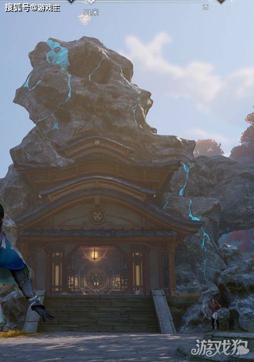 传送到地图上隐逸村渡石,来到隐芝斋府邸,向上看发现最高处有闪光,攀爬假山后获得第五个赋神令。