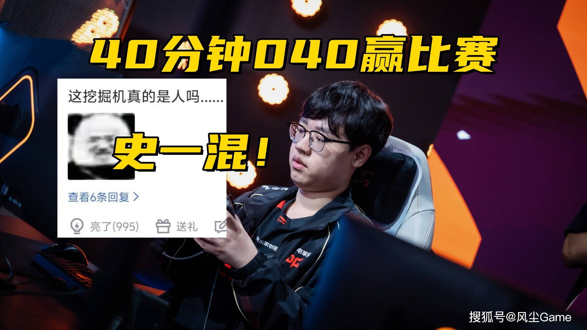 最有意思的还得上路,小徐不管选什么英雄,对线都打不过Bin哥,决胜局的挖掘机,甚至被塞恩反压刀,上路差距是真的大,最抽象的是,决胜局打了40分钟,京东一共14个头,小徐一个没参与,比赛结束的时候,挖掘机0-4-0,能打出这种战绩,说实话不多见,小徐真是“混世魔王”了。