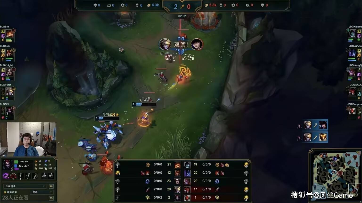Viper顶着对面四个人,跟飞机对A,结果嘎子一发暴击,直接把老公打残,顺势还一个大导弹,收掉了ON,比赛局势瞬间反转,少人的BLG,上单被追死,双C和打野3打5,最后没能守住基地,京东耗时40分钟,成功拿下BLG,这场BO3打得,是真的精彩,JunJia全场节奏完爆Xun。