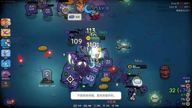 这便呈现出了《佩布尔骑士》的另一面——尽管游戏贴心地为玩家准备了BOT,且BOT的行动逻辑完全服务于国王玩家。它们会将自己收集到的闪光武器主动扔给国王,会在升级抉择中优先据点,还会自己展开Farm,让国王坐享其成。