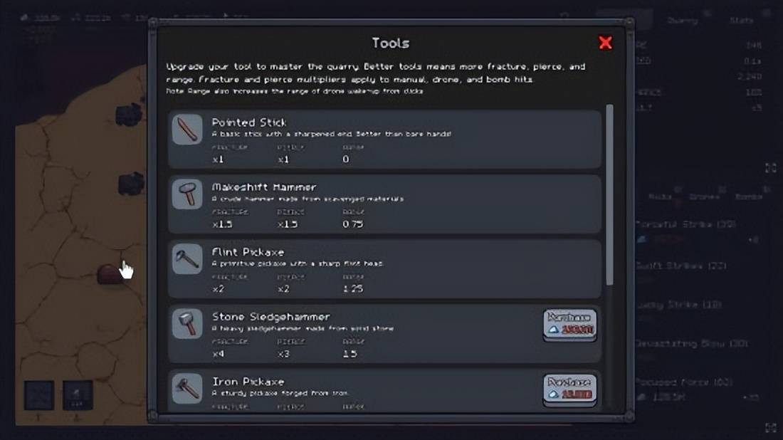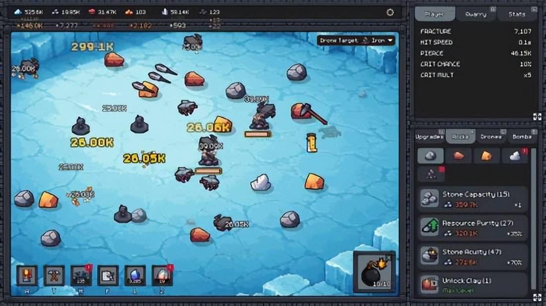 游戏的核心,始于每一次富有节奏的挖掘。你需要掌握那种叮叮当当的韵律,感受镐头冲击岩层带来的扎实反馈,从岩石、陶土和砂石之下,发掘出宝贵的金属与璀璨的宝石。随着矿层加深,岩石将愈发坚硬,但回报也愈加丰厚。然而,矿场空间有限,仅凭蛮力无法长久。你必须担当起管理者的职责,巧妙运用积累的强力炸弹清除障碍,优化矿坑布局,将采集效率提升至极限。