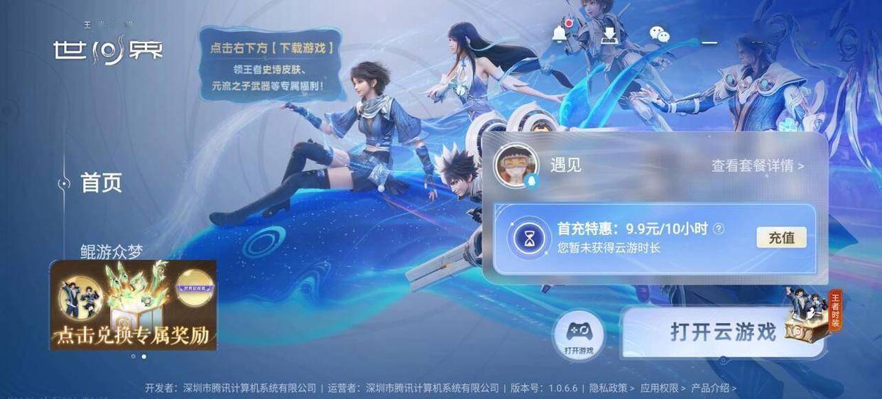 玩王者荣耀世界不需要用到这个云游戏,云游戏是需要花钱买时间的,我们直接用pc端或者是手机端下载正常的安装包去玩,然后达成对应的条件就可以来这个云游戏这里领取。
