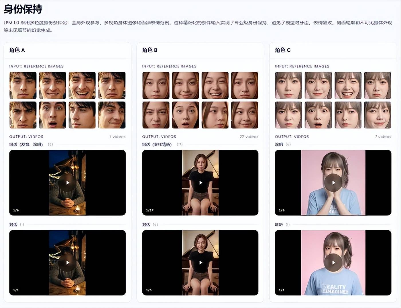 具体来看,它能精准匹配口型与语音,角色聆听时会自然点头、皱眉,肢体动作流畅不重复,且长时间互动中保持形象与身份一致。
