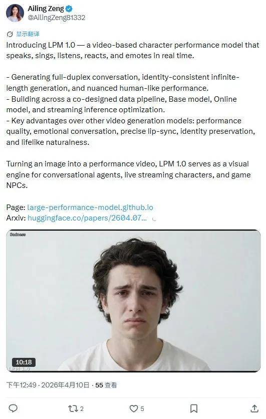 2026年4月9日,科技圈被一条消息炸出水面——米哈游前创始人蔡浩宇创办的新公司 Anuttacon,在arXiv正式发布视频角色表演大模型LPM 1.0(Large Performance Model)的相关论文,并同步上线项目主页。