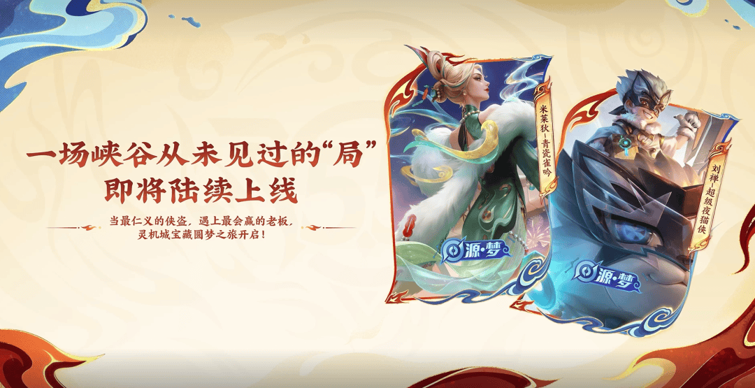 仁义的侠盗和最会赢的老板,分别对应刘禅的新皮肤超级夜猫侠,米莱狄的新皮肤青瓷雀吟。