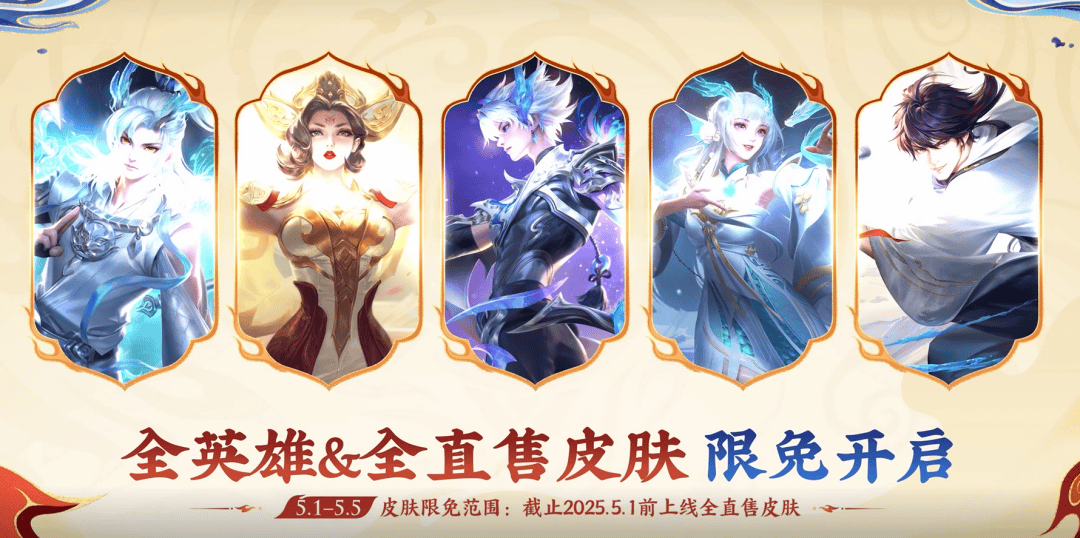 最后是麻将玩法变为常驻玩法,以及全英雄&全直售皮肤限免开启的活动了,大胡子后者,因为可以免费的爽几天!后者具体活动时间为5月1日-5月5日,皮肤限免范围为2025年5月1日前上线的全直售皮肤。