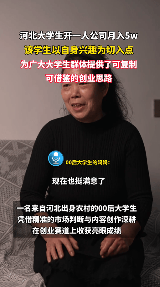 视频里,这个大四男生说了一句让所有人破防的话:“自己兼职近快一年,给家里买了第一辆小汽车。”镜头切到他的妈妈,记者问“会感到骄傲吗?”妈妈笑着回答:“现在也挺满意了,会感到骄傲。”