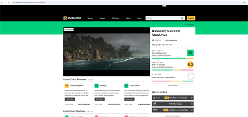 无论是开放世界的密度、任务节奏,还是场景氛围和历史还原感,它都保持了比较统一的水准。媒体层面对它的评价也相当积极,比如 PC Gamer 就直接称它为“我近十年玩过最棒的潜行游戏之一”,而在 Metacritic 上,它也拿到了 81 分 的好评,并被评价为“刺客系列的新进步”。