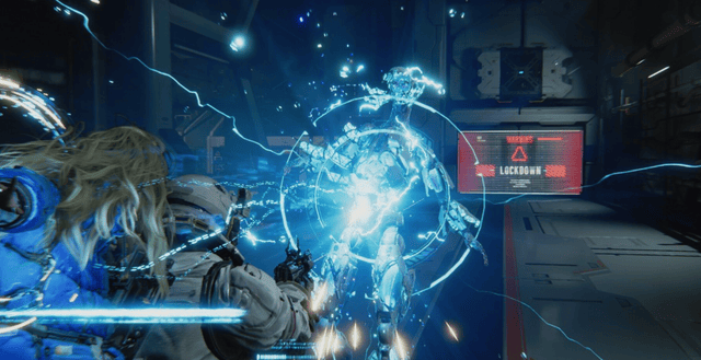 休负责正面战斗,手持手枪、霰弹枪等武器,配合喷气背包灵活闪避;而戴安娜则拥有骇入能力,能破解敌人护盾与设施。战斗时,玩家需一手操控休走位射击,一手完成戴安娜的实时解谜,只有成功骇入,才能破除敌人防御、打出高伤。闪避创造时间窗口、骇入破防、精准射击,三个环节环环相扣,节奏紧张又充满策略深度。