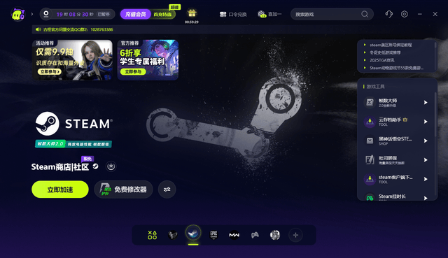 另外玩家们还可以使用古怪加速器,特别是在steam商店打不开、加载不出来的情况下,开启古怪加速器后可以丝滑无卡顿加载商店,而且还可以永久免费加速Steam平台,各类联机游戏也开启加速模式0延迟无卡顿,再也不用担心游戏掉线啦~