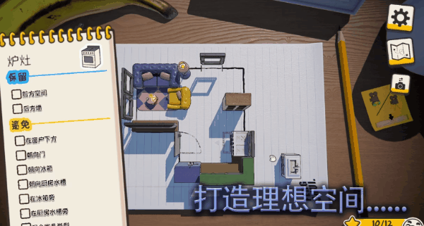 《风水宝地》的实际流程,就是根据游戏提供好的户型平面度,依次将家具、摆件等物品放入其中,此外还需要规划房型中入户门与窗户的出现位置、楼梯的角度朝向、有效的空间利用率等问题。