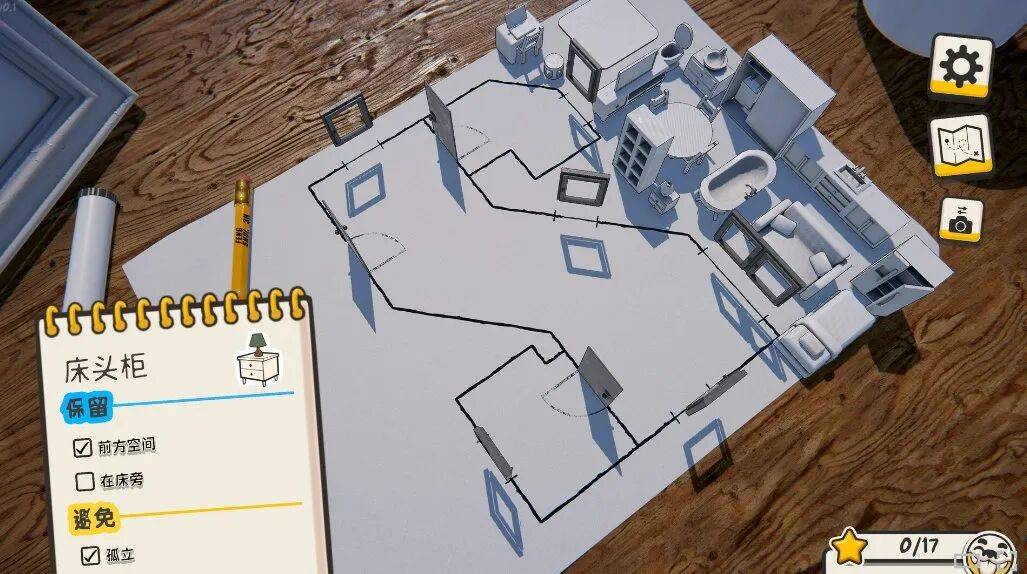 这个现实逻辑也构成了《风水宝地》的游戏难度曲线,随着关卡的深入,会出现一系列户型更复杂的房间,在不同种类的家具数量进一步增加后,彼此之间需要考虑的规则只会指数级上升,想要达成游戏给出的各个星级目标,相当考验玩家对风水规则的理解和整体的规划能力: